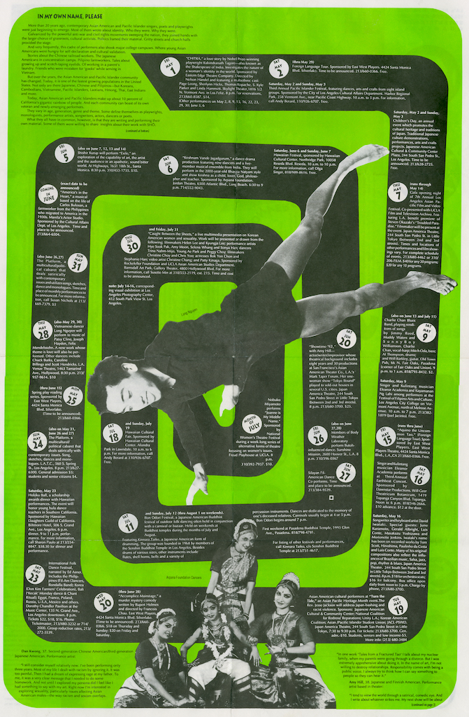 1993 Foldover mailer of “SHO” LA’s Arts and Entertainment Calendar. A project of Great Leap Inc. Courtesy of Nobuko Miyamoto